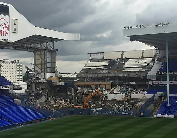 36-тысячный стадион «Тоттенхэма» «Уайт Харт Лейн» был открыт в 1899 году, а последний матч там сыграли вчера. «Тоттенхэм» обыграл напоследок «МЮ», болельщики выбежали на поле попрощаться с родной ареной, а уже через несколько часов она мало напоминала футбольный стадион.