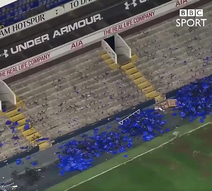 Кресла снесены. Кстати, каждый желающий болельщик «шпор» мог купить родное кресло за 50 фунтов.