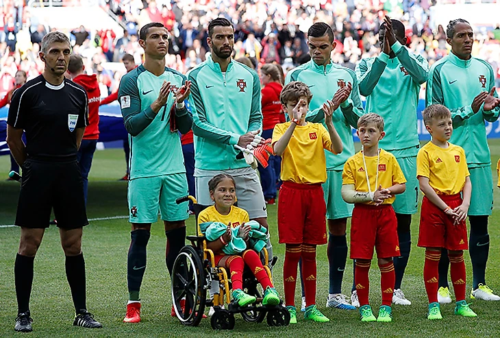 Криштиану был в порядке и перед игрой, он вышел на матч с девочкой-колясочницей Полиной Хаерединовой, и подарил ей кофту сборной Португалии.
