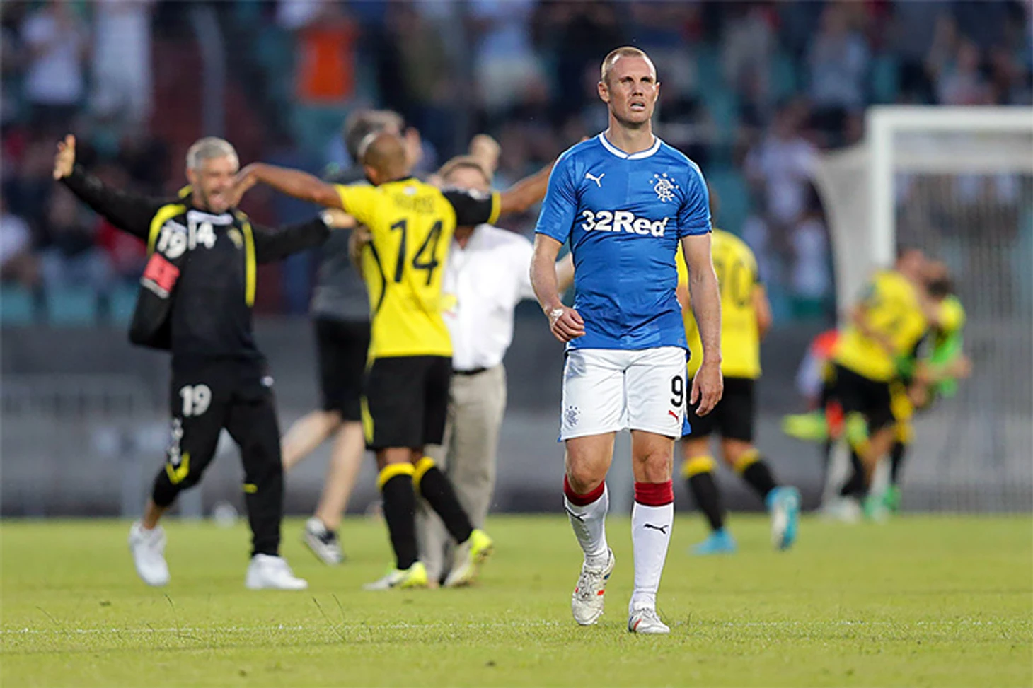 «Рейнджерс» вернулись в еврокубки спустя 6 лет и бесславно вылетели в первом же квалификационном раунде Лиги Европы. Шотландцы приехали в Люксембург после домашней победы 1:0 (на игре было больше 48 тысяч болельщиков) и неожиданно уступили клубу «Прогрес Нидеркорн» – 0:2.