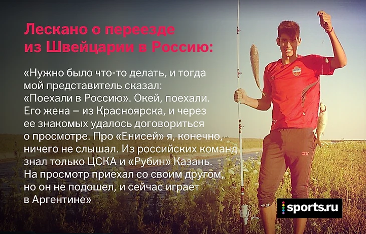 Два года назад Лескано играл в «Енисее» и рассказал Sports.ru, как он оказался в России.