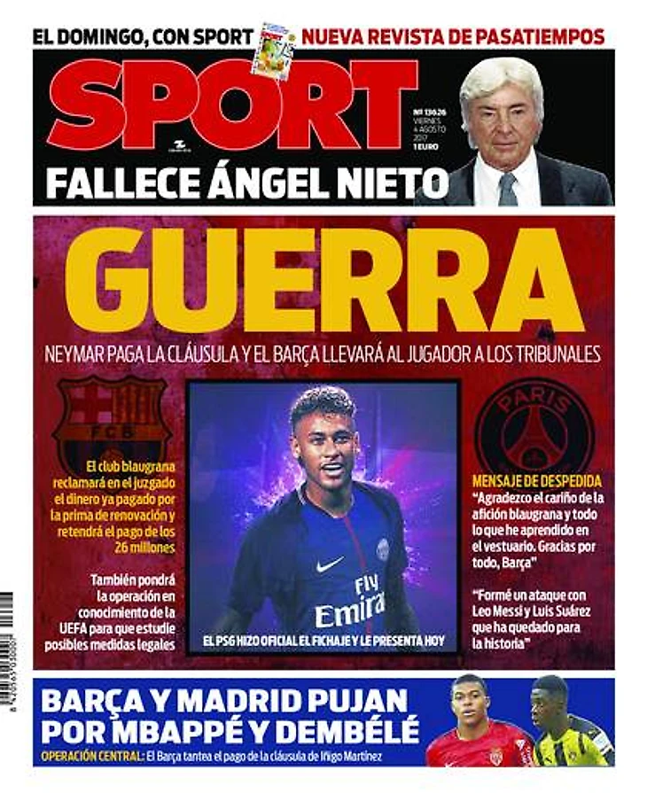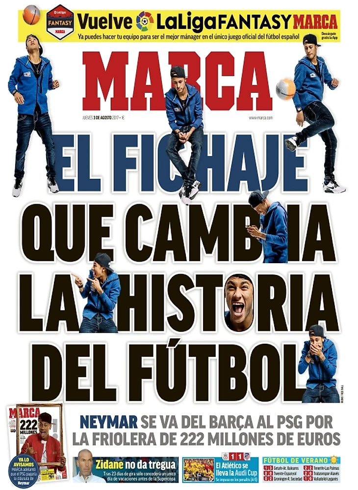 Главные испанские издания начали провожать Неймара уже 3 августа, когда «Барселона» объявила официально о желании бразильца уйти. На следующий день писали и о деньгах, которые можно удачно потратить.