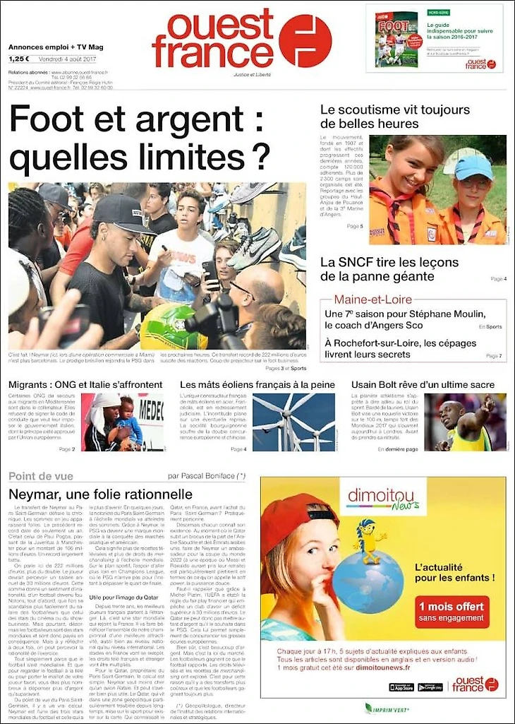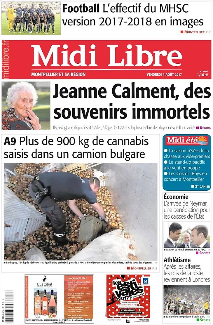 Кажется, во всей Франции лишь газета Midi-Libre поставила на обложку не Неймара. Тема дня в редакции – задержание грузовика с 900 килограммами конопли. Но заголовок про Неймара тоже есть: «Трансфер Неймара – благословение для государственной казны Франции».