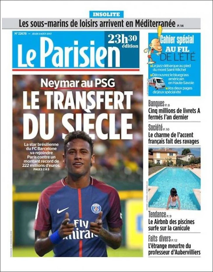3 августа – «Переход Неймара в «ПСЖ» – трансфер века»
