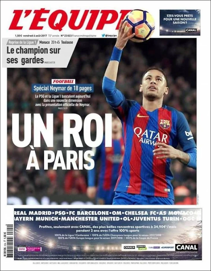 L’Equipe: «Король в Париже». Газета подготовила специальный 18-страничный номер о новой звезде Парижа.