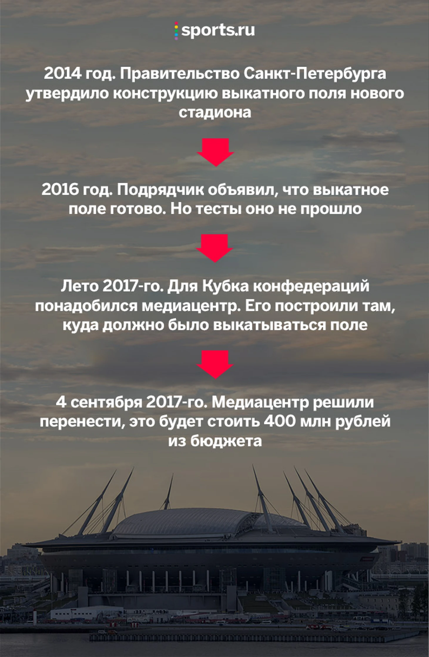 Очевидно же что ФИФА максимум что сделали - предложили место под медиацентр, а идиоты местные не подумали что туда поле должно выкатываться и не подумали о последствиях. Либо подумали слишком поздно и уже не было времени заниматься документами, стали строить на пути поля. Если бы с самого начала люди головой поработали и предупредили ФИФА о недопустимости такого решения, то те конечно бы согласились.