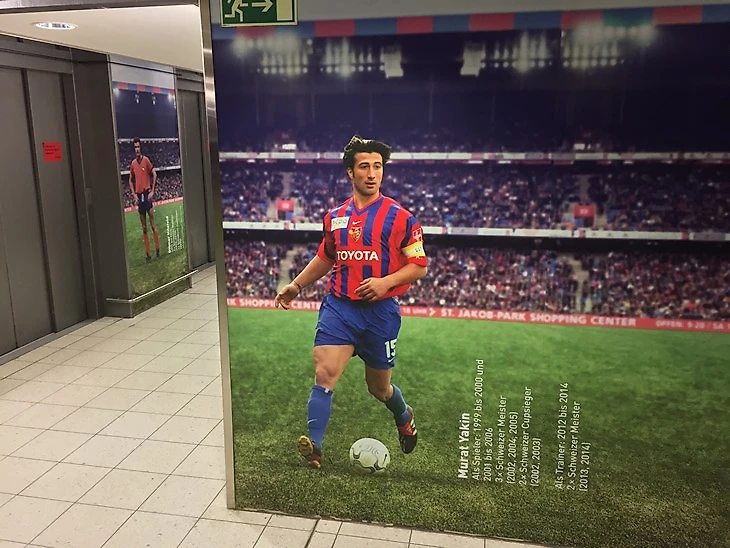 Путь к лифту торгового центра под стадионом – фотографии звезд клуба прошлых лет. В компании Ивана Ракитича, Мохамеда Салаха и Оттмара Хитцфельда оказался и бывший тренер «Спартака».