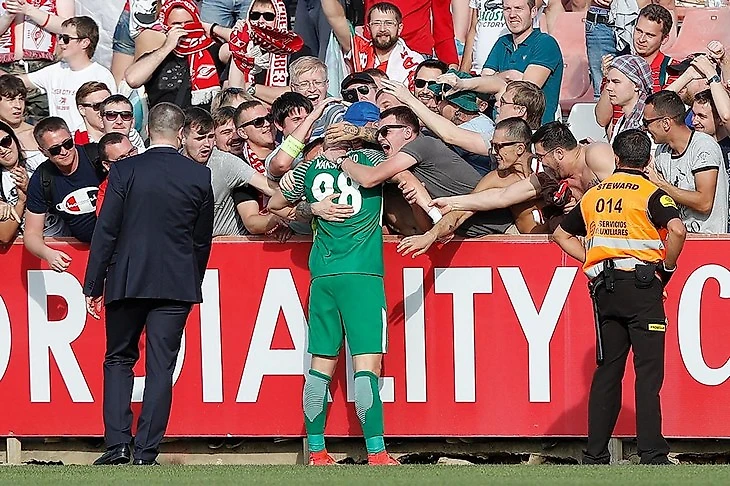После матча игроки «Спартака» обнимались с фанатами, которых на матче было, по разным оценкам, от 700 до 1000.