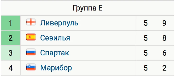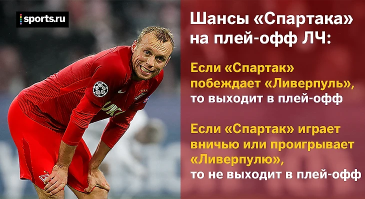 По раскладам все просто: либо «Спартак» побеждает «Ливерпуль» и выходит из группы, либо он попадает в Лигу Европы. Может возникнуть ситуация, что «Спартак» выиграет, а «Севилья» сыграет вничью с «Марибором», и у всех команд будет по 9 очков. Тогда «Спартак» выйдет из группы с первого места по личным встречам с «Ливерпулем» и разнице мячей с «Севильей».