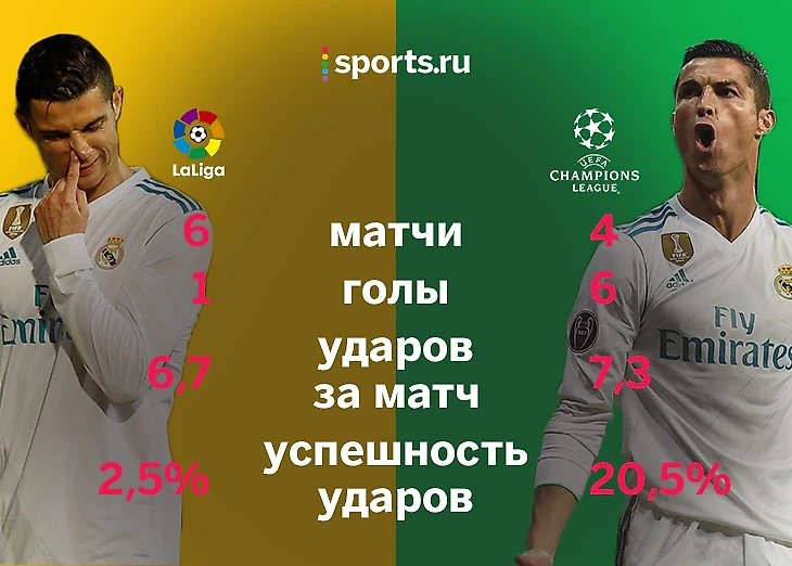 По данным WhoScored, в примере у Роналду вообще худший процент успешности ударов среди всех, кто забивает в топ-5 лигах (2,5%). В Лиге чемпионов показатель почти в 10 раз выше.