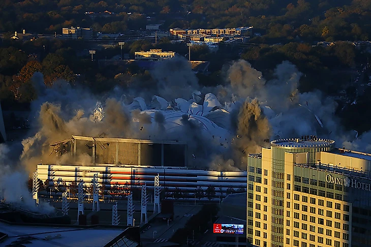 Вчера в Атланте демонтировали стадион «Джорджия Доум». Он вмещает 71 тысячу зрителей (80 тысяч на концертах), но больше не нужен городу. Выглядело круто: