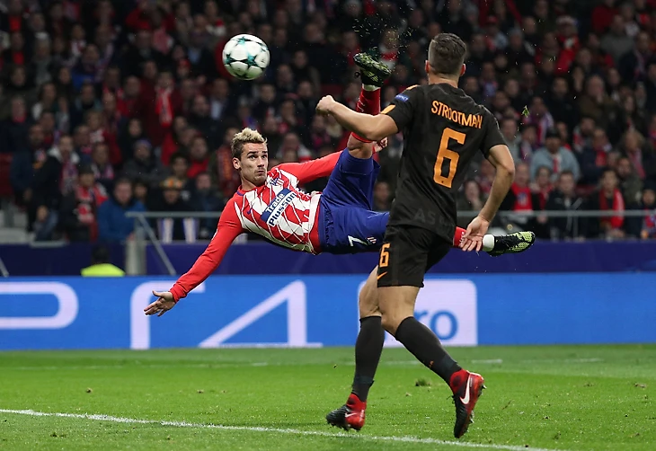 Теперь на счету француза победный удар «Роме» ножницами (2:0), но у «Атлетико» нет времени ни на празднества, ни на восхищения. Чтобы выйти из группы, надо в последнем туре обыгрывать «Челси» и надеяться на то, что «Рома» не победит «Карабах».