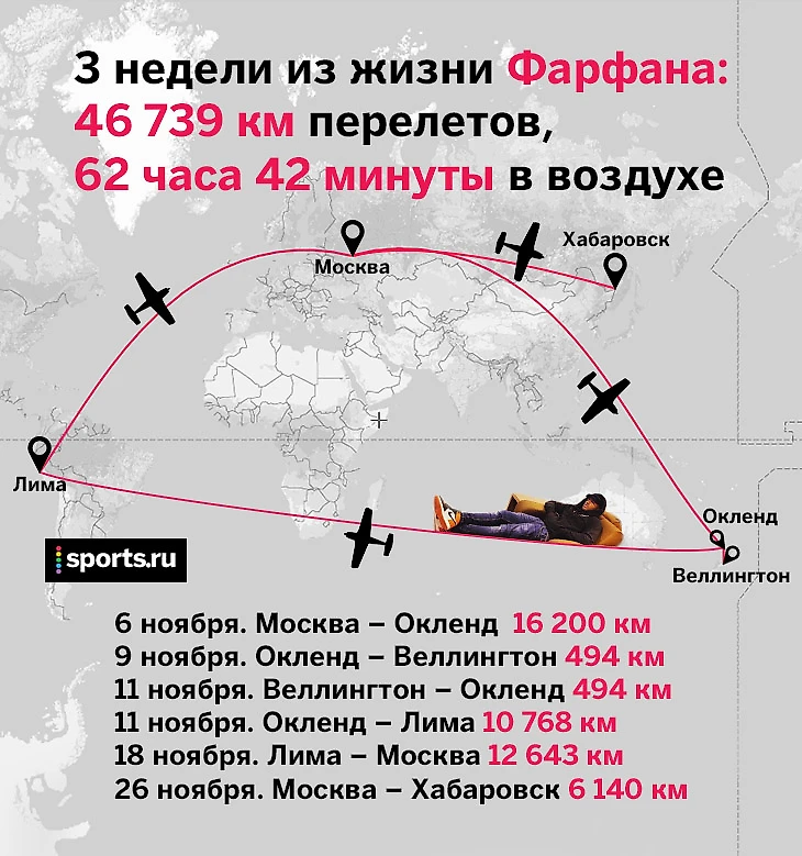 Из-за экономии времени и сил Фарфан сразу присоединился к команде в Окленде (Новая Зеландия), а не в Лиме (Перу). Там перуанцы тренировались несколько дней, а незадолго до игры вылетели в Веллингтон. Путь занял чуть меньше часа (все расчеты сделаны на основе сайта «101 карта»).