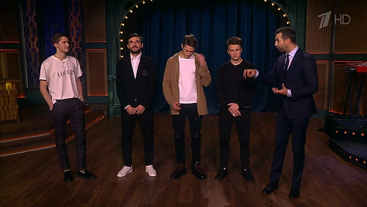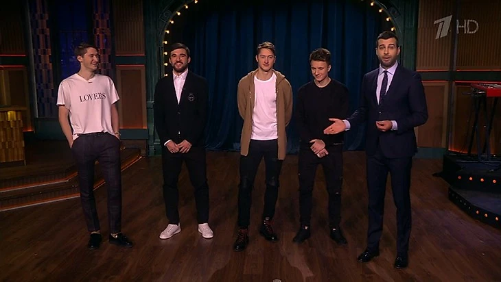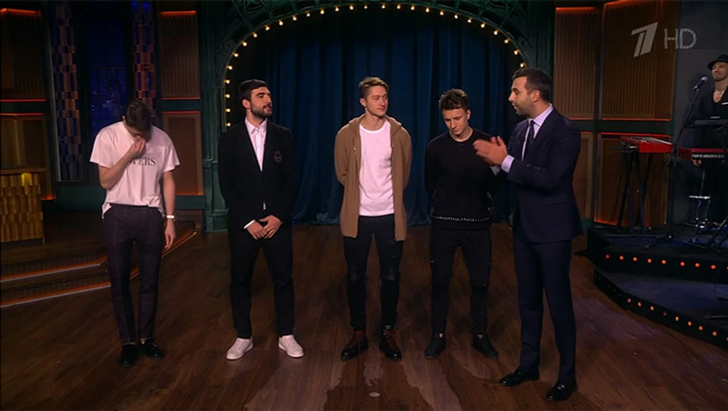 Миранчуков, Джикию и Головина пригласили для импровизированной рубрики «Выборы, от которых ничего не зависит» – шутливой жеребьевки ЧМ-2018, в которой определяются только соперники сборной России. Все 7 минут говорил Ургант – игроки сборной России просто слушали стендап главного шоумена страны. О его качестве еще поговорим.