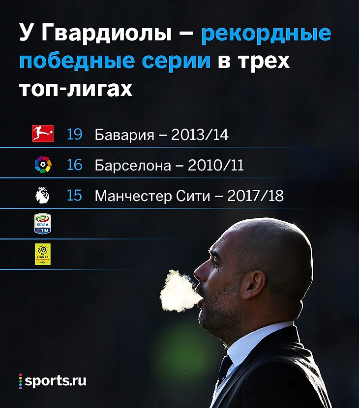 Главное – теперь Гвардиоле принадлежат рекордные серии сразу в трех топ-чемпионатах Европы – Англии, Испании и Германии. В Италии и Франции он еще просто не работал.