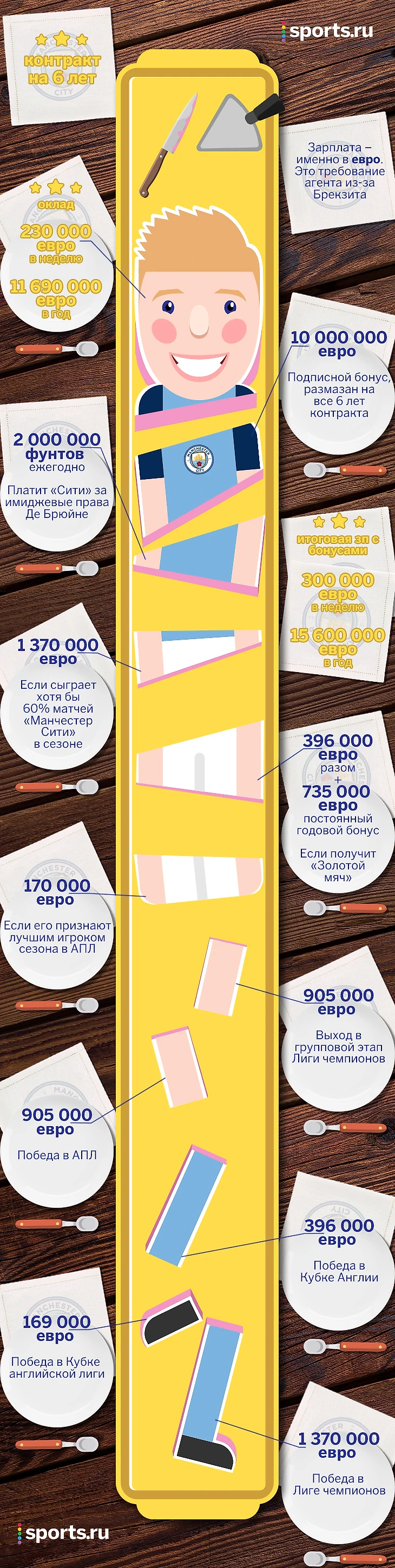 Отличный контракт, но даже со всеми бонусами зарплата де Брюйне далеко не рекордная. У звезд «ПСЖ» Неймара и Мбаппе, например, она точно выше.