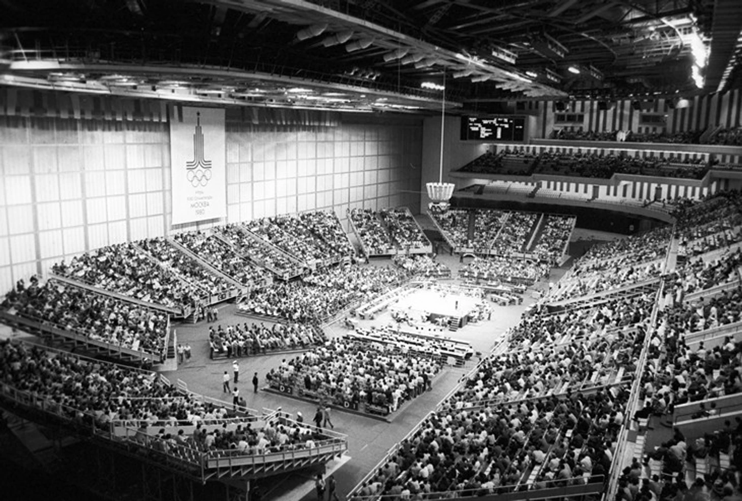 Крытый стадион «Олимпийского» вмещал 35 тысяч зрителей, это был самый крупный крытый стадион Европы. Вот фотография соревнований по боксу на московской Олимпиаде.