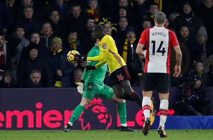 И тогда самый грозный игрок «Уотфорда» Абдулай Дукуре (уже 7 голов) протолкнул мяч в ворота – сымитировав легкий кивок головой, но на самом деле вытянув руку навстречу мячу.