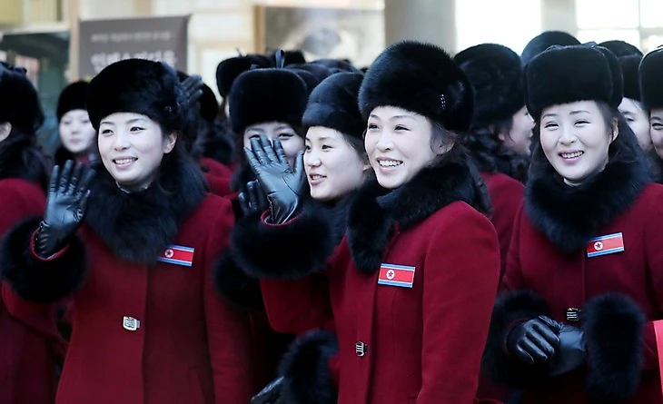 Самая необычная группа поддержки на Олимпиаде в Пхенчхане – 230 болельщиц сборной Северной Кореи. Они приехали на Игры в одинаковых красных пальто с мехом, одинаковых черных шапках и одинаковых черных ботинках.