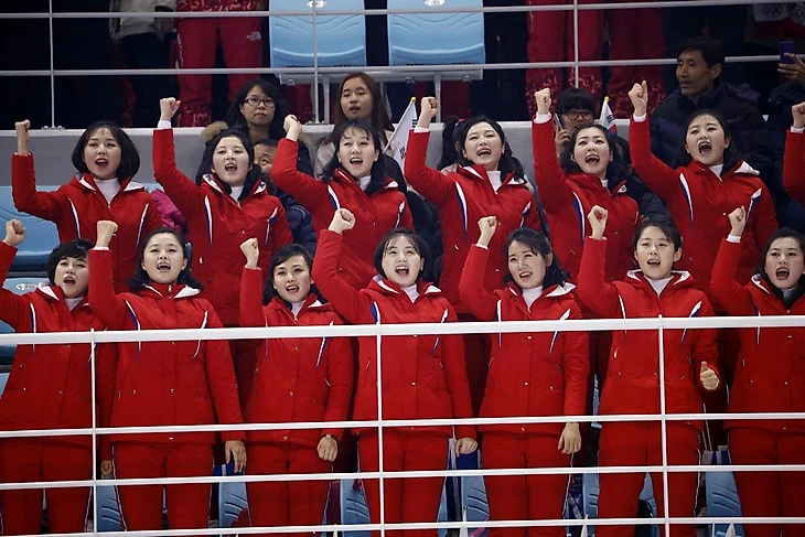 Это не первый раз, когда Северная Корея отправляет болельщиц на международный турнир. Но на Олимпиадах их еще никогда не было.