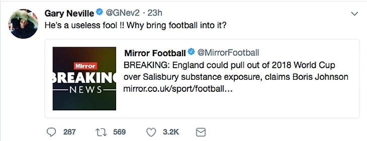 Гари Невилл назвал министра иностранных дел бесполезным дураком.