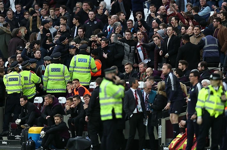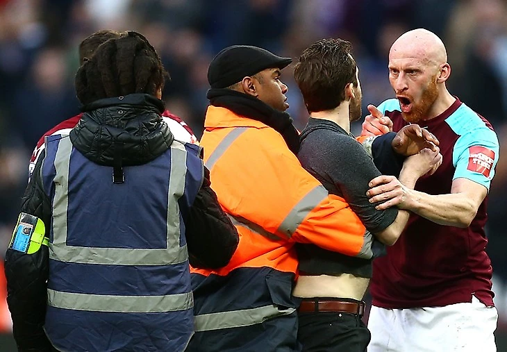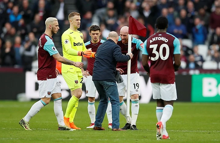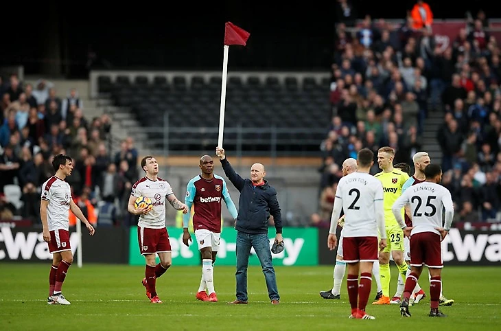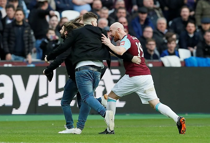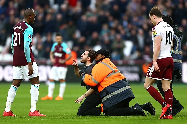 До 66-й минуты счет был 0:0, а в середине второго тайма «Бернли» забил. Сразу после гола на поле начали выбегать недовольные болельщики «Вест Хэма». Их успокаивали собственные игроки – например, защитник Джеймс Коллинз.