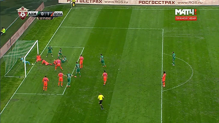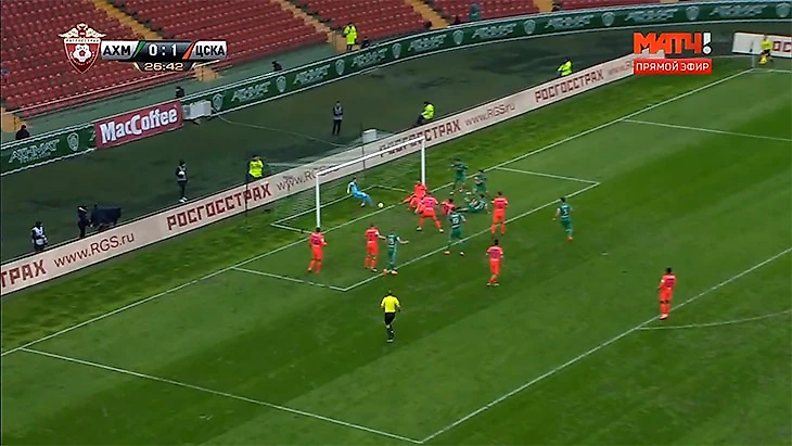 В первом тайме матча «Ахмата» и ЦСКА у ворот гостей произошел спорный эпизод. Игорь Акинфеев выбил мяч из ворот после удара Одисе Роши. Счет тогда был 1:0 в пользу армейцев.