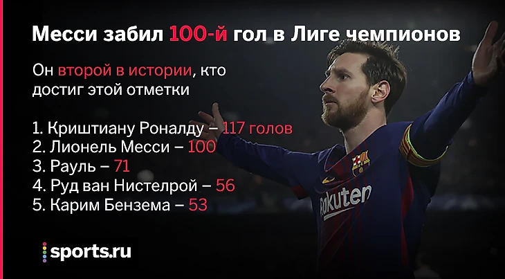 Месси забил 100 голов в ЛЧ быстрее Роналду. Пулемет