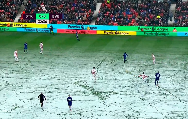 Помните историю с желтым мячом, который было не видно на заваленном снегом матче «Локомотива» и «Спартака»? Тогда мы ругали руководство РФПЛ, но сегодня в Англии такая же история на матче «Сток» – «Эвертон».