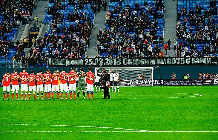 На матче Россия – Франция (1:3) тоже обсуждалась страшная трагедия в Кемерово, где при пожаре в торговом центре погибли 64 человека.