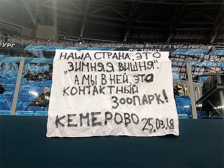 Остальные плакаты политику не затрагивали. Санкт-Петербург сопереживал Кемерово.