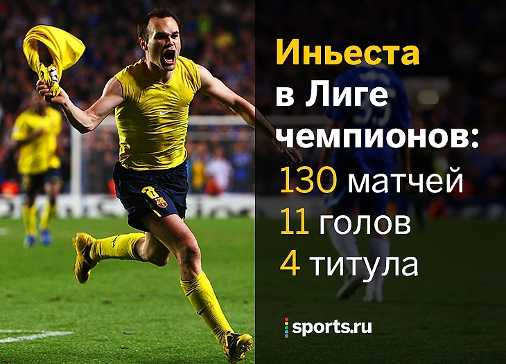 Всего Иньеста провел в 130 матчей ЛЧ, забив 11 голов. Он выиграл главный клубный турнир Европы 4 раза: в 2006-м, 2009-м, 2011-м и 2015-м.