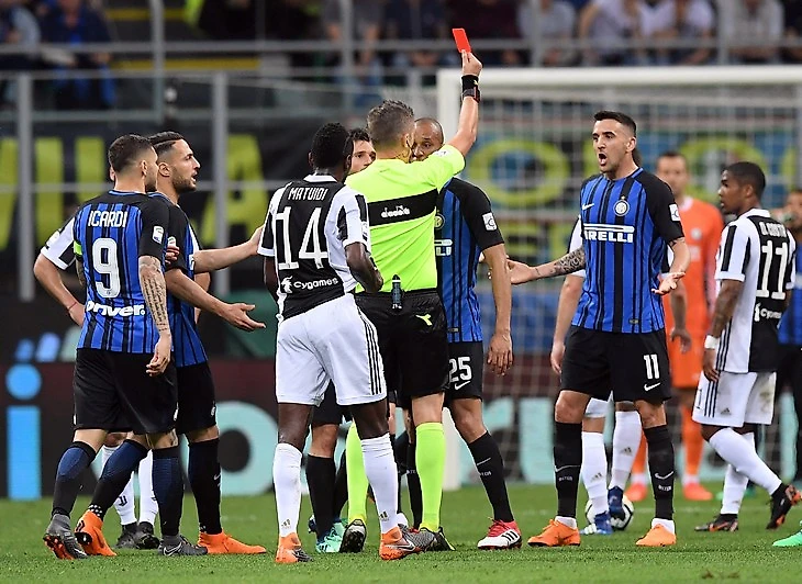 Спорные судейские решения были и в этом матче. На 14-й минуте арбитр Даниэле Орсато смотрел повтор, чтобы подтвердить гол Дугласа Косты в ворота «Интера». На 18-й Орсато удалил игрока миланцев Матиаса Весино – тоже после использования VAR. В начале второго тайма он не дал вторую желтую Пьяничу, когда тот врезался в Брозовича.