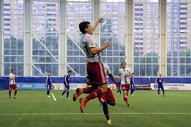 Сегодня «Тамбов» и «Амкар» играли ответный стыковой матч за право выступать в РФПЛ. Главное, что нужно знать об этой игре: она прошла в манеже, с одной трибуной, вмещающем меньше 2 тысяч зрителей.