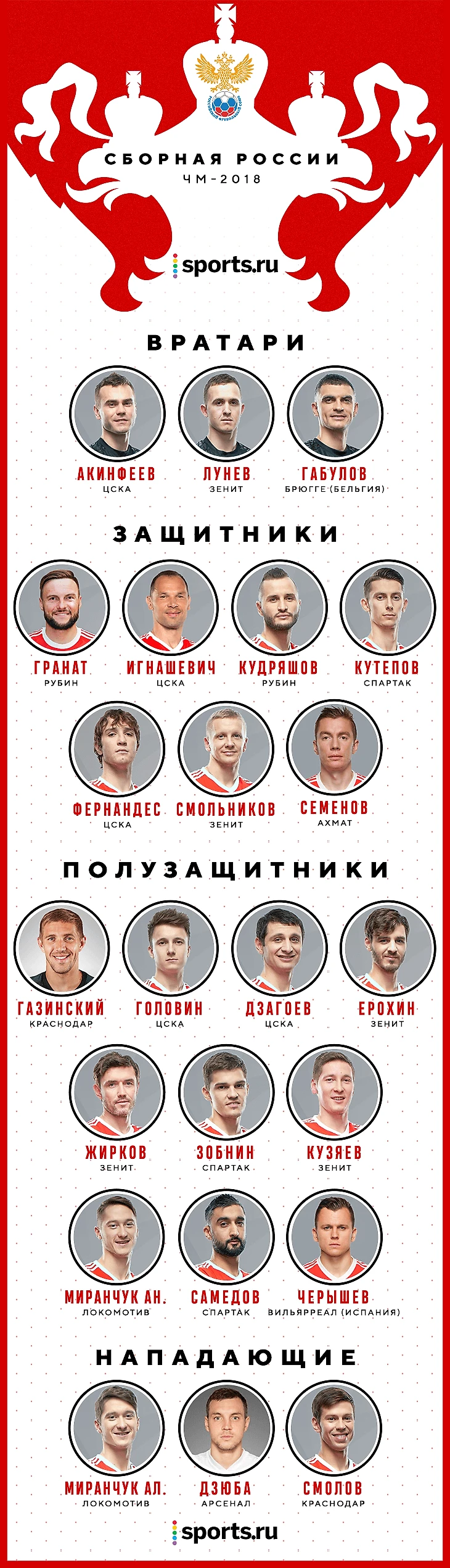 Россия на ЧМ-2018: с Габуловым и Фернандесом, без Ташаева и Чалова
