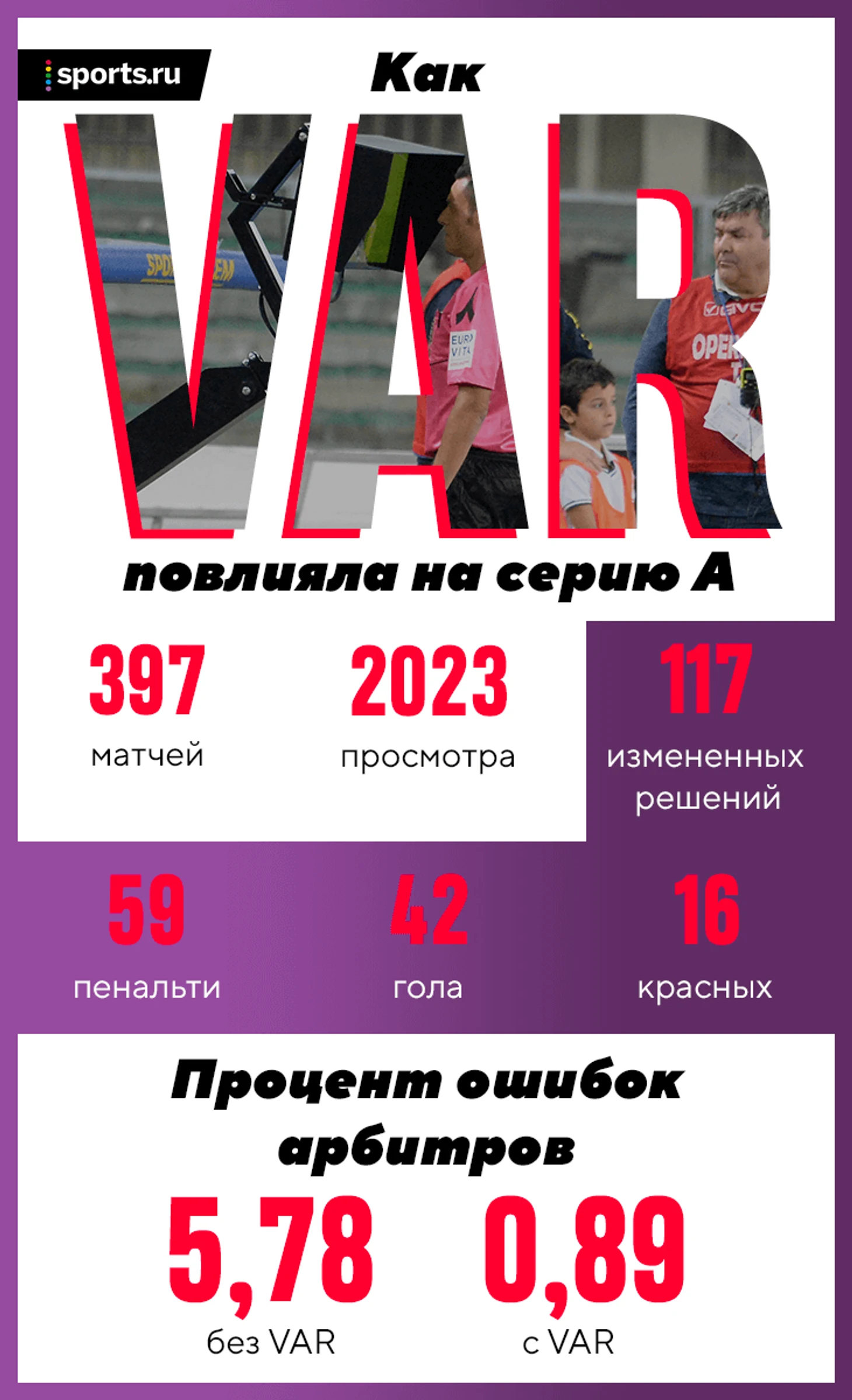 С прошлого сезона VAR внедрили серьезные чемпионаты – серия А, бундеслига, чемпионат Португалии. Статистика VAR в Италии очень четко показывает, что дает новая система футболу.