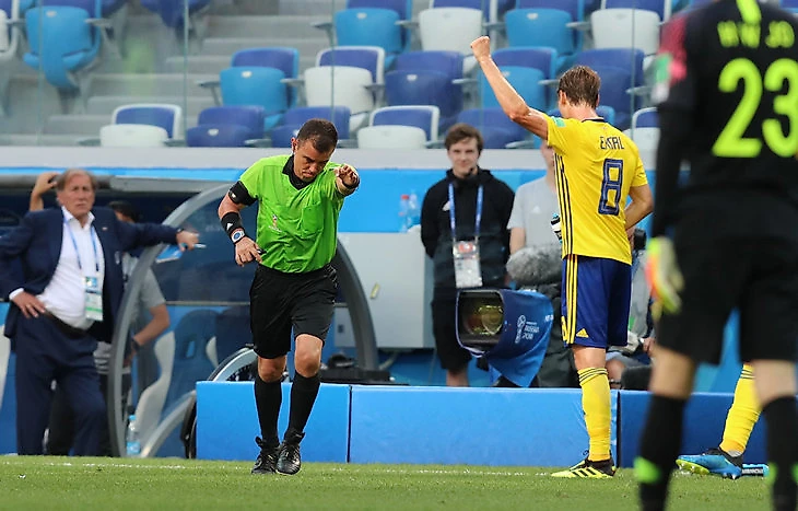 Система видеопомощи арбитрам каждый день влияет на исходы матчей ЧМ. Франция победила Австралию (2:1) благодаря пенальти, который арбитры сначала не заметили. Сегодня шведы так же обыграли Корею (1:0). Перуанцы могли повести в счете с пенальти, назначенного после видеопросмотра, но Куэва промахнулся.