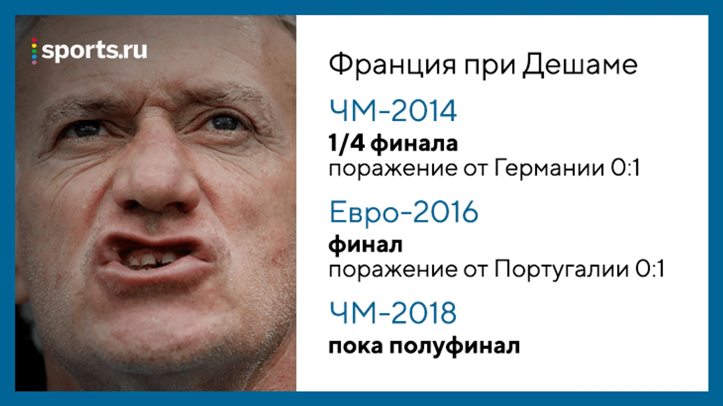 Успех французов – успех Дидье Дешама, пожалуй, самого критикуемого тренера из топ-команд. И это при том, что с его приходом 6 лет назад сборная только прогрессирует.