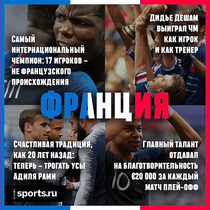• Победа Франции – немного и про глобализацию в спорте. 17 игроков в заявке так или иначе связаны с другими странами: либо родились не во Франции, либо имеют не французские корни. Никаких проблем – все выросли и состоялись во Франции, а главную мысль за команду сформулировал красавчик Мбаппе: