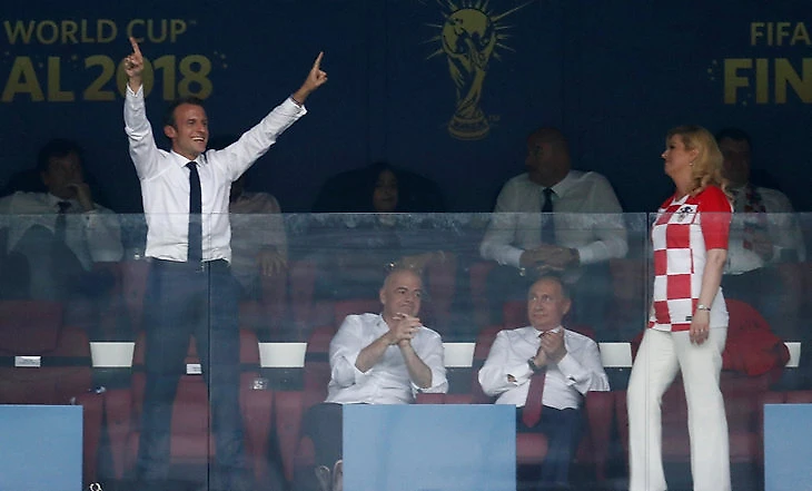• Президент Франции Эммануэль Макрон – фанат футбола. Он публично поддержал Дешама в конфликте с Каримом Бензема, приехал на полуфинал и финал в России, причем пригласил в «Лужники» Димитри Пайета и Лорана Косьелни, которые пропустили турнир из-за травм – эффектный жест.