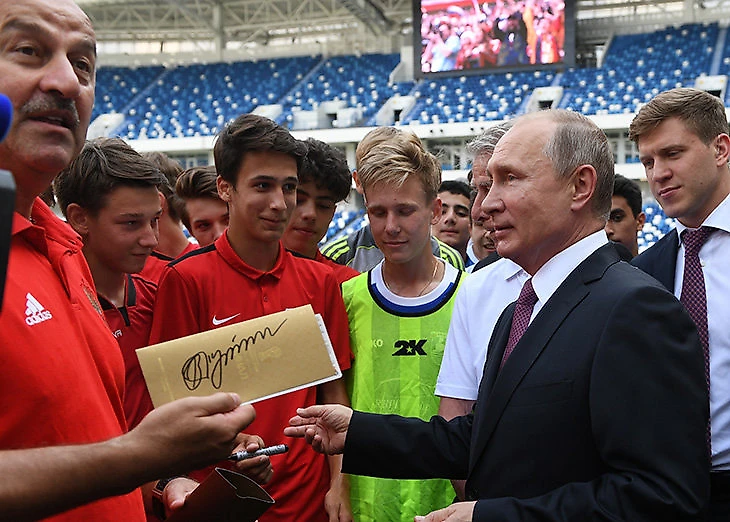 Станислав Черчесов и Владимир Путин приехали в Калининград на заседание Совета по развитию физкультуры и спорта при президенте России и встретились на местном стадионе, где пообщались с воспитанниками калининградского футбола. Путин расписался на мяче, Черчесов воспользовался случаем: