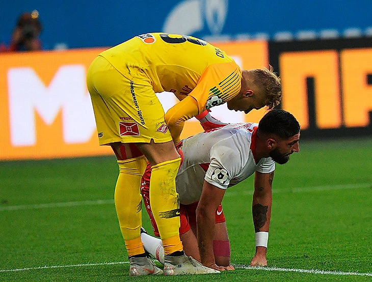 Худшая новость для «Спартака» – травма главного защитника команды, в котором многие уже увидели наследника Видича. Жиго сильно повредил колено, упав после столкновения с Дзюбой – форвард «Зенита» толкнул француза в спину. Специально или нет – до сих пор спорят в соцсетях. На замедленных повторах видно, что Жиго и так спотыкался перед падением – но главное, что Самюэль мог усугубить повреждение своим возвращением на поле после первого контакта с врачами. Через пару минут защитник рухнул на газон и даже не смог встать.