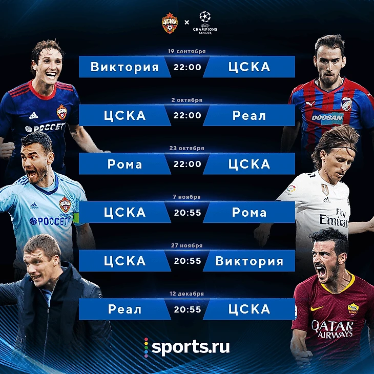 Три последних матча группы ЦСКА начнет в 20.55 мск – домашние с «Ромой», «Викторией» и гостевой с «Реалом».