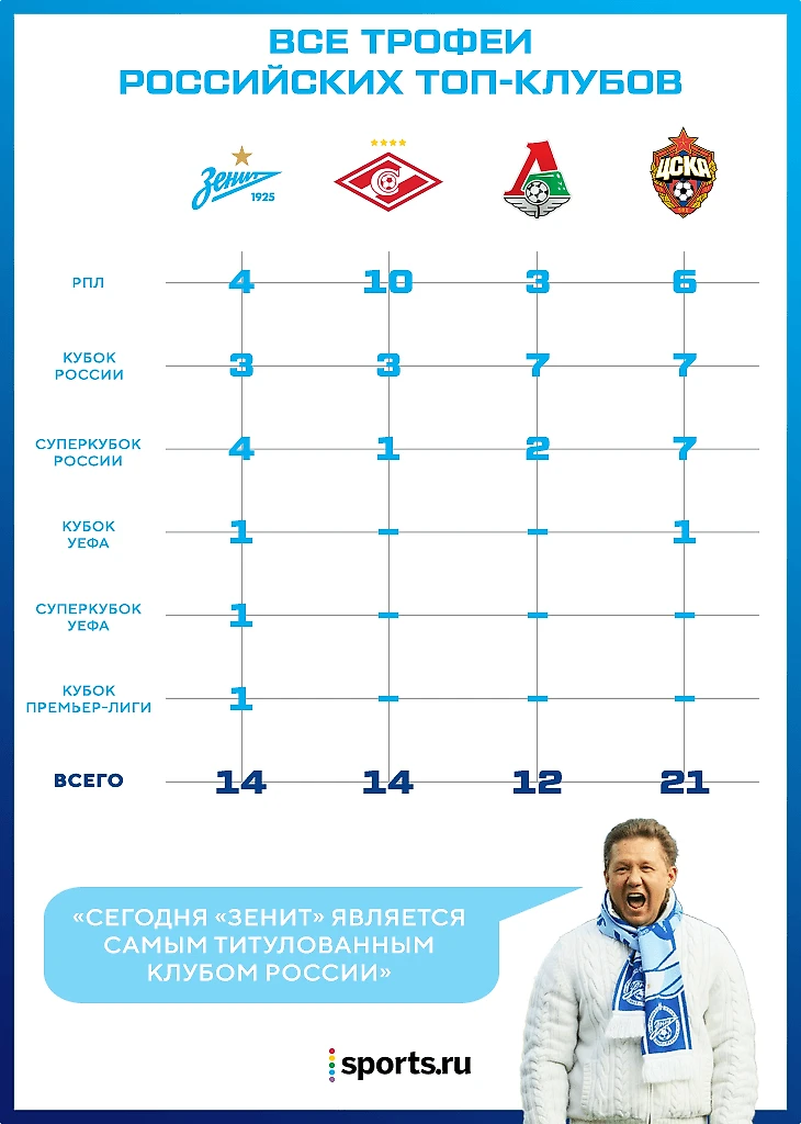 Очень простой фактчек. Самый титулованный – не «Зенит».