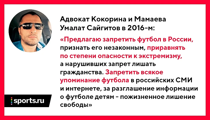 Адвокат Кокорина и Мамаева предлагал запретить футбол в России