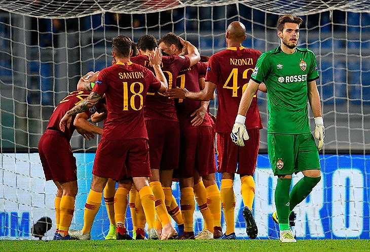 • Четыре года назад ЦСКА c Акинфеевым, Березуцкими и Игнашевичем сгорел в Риме 1:5. Сегодня ЦСКА снова разгромлен в Риме (и опустился с первого на третье место в группе), но вместо ветеранов играли 22-летние Помазун, Чернов и Родриго Бекао, а вместо разочарования по итогам матча – только уважение. ЦСКА периодами был хорош, особенно в начале первого тайма, когда Ольсен реально тащил после ударов Чалова и Влашича. Молодой ЦСКА Гончаренко не приехал в Рим ставить автобус: по владению сегодня было 53% на 47% в пользу хозяев, по ударам – 21 на 12.