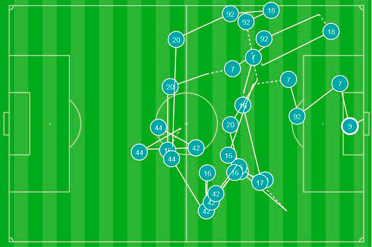 • Гончаренко после игры сказал, что первый гол римлян надломил ЦСКА. Возможно, дело было в том, что «Рома» Ди Франческо забила его так, будто она «Барселона» Гвардиолы: Джеко пробил Помазуна после 29 пасов игроков «Ромы». Последний раз такая комбинация удавалась игрокам «Барселоны» в октябре 2017 года, когда Люка Динь забил «Селтику» тоже после 29 пасов.