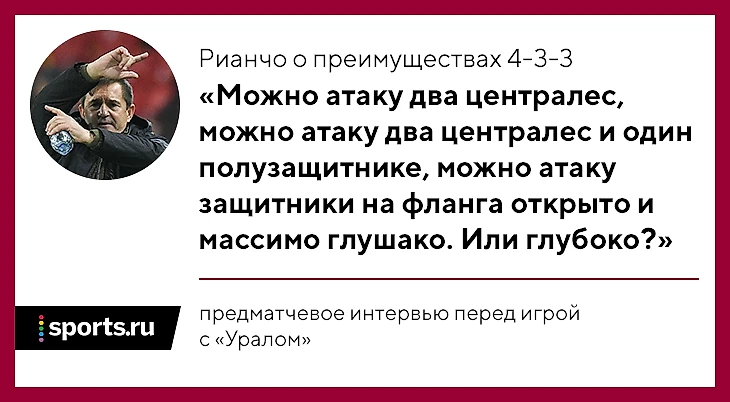 Рианчо говорит о схеме 4-3-3 в каждом интервью. Чтобы четче донести тезисы, перед игрой с «Уралом» он даже перешел на русский.