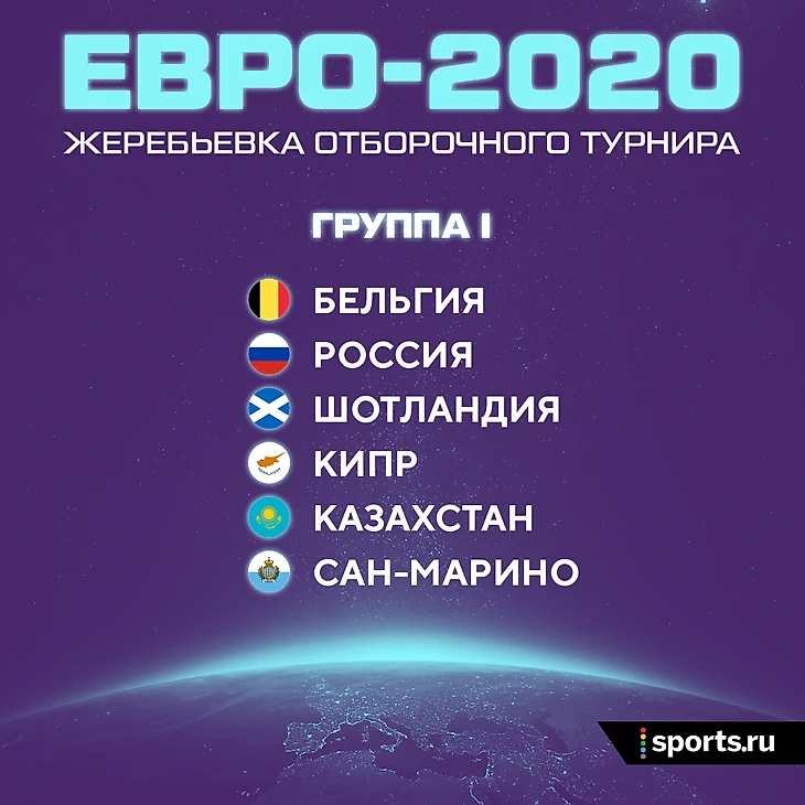 • Мы узнали соперников сборной России по группе I. Это Бельгия, Шотландия, Кипр, Казахстан и Сан-Марино.