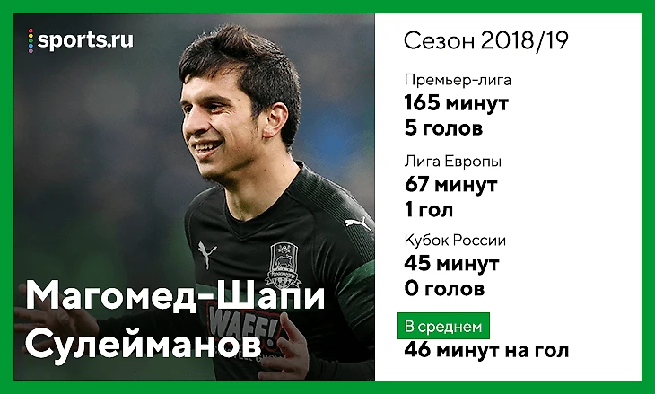Сулейманова из «Краснодара» не остановить. Он забивает каждые 46 минут